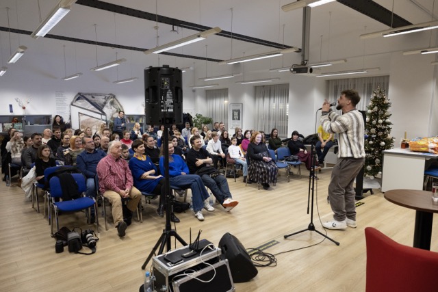 Slavnostni vrhunec festivala je sledil 12. decembra 2025, ko smo se na posebni prireditvi poklonili izbranim in nagrajenim avtorjem. Pavčkova dvorana v Mladinski knjigi v Ljubljani je bila polna do zadnjega sedeža. Ob prihodu nas je pozdravil Pižama, ki je – kot vedno – skrbel za smeh in dobro voljo.