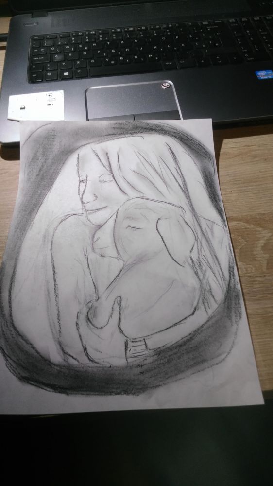 Še mam oglje (na knap gre) tako, da sem narisala še pilovo veterinarko. Upam, da vam je všeč.