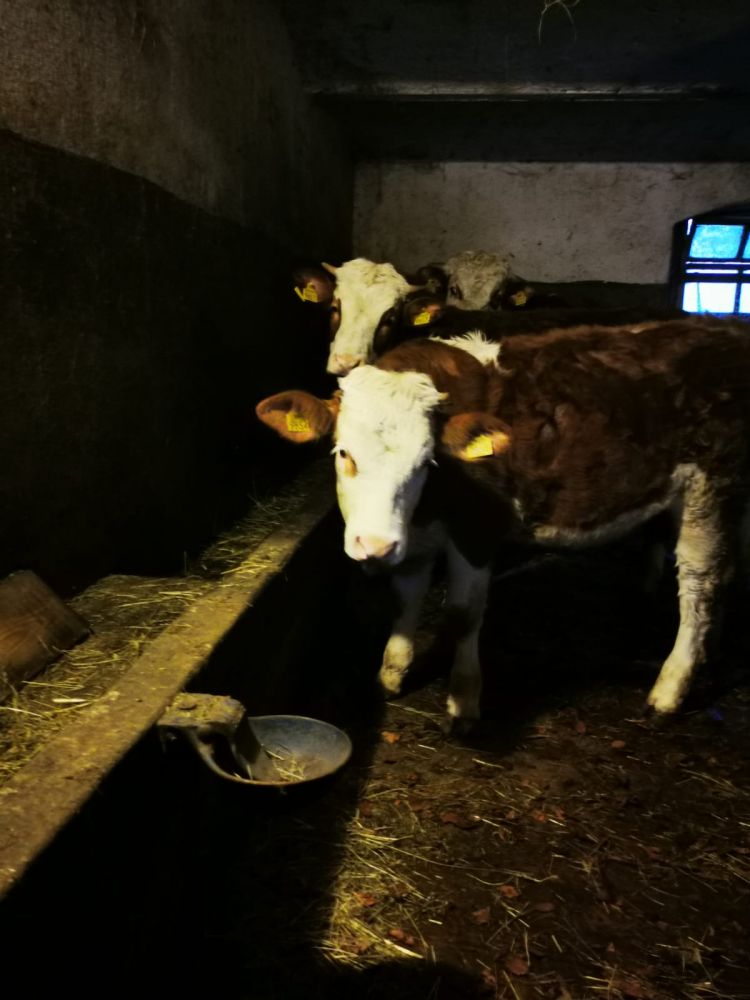 *b*Torej tole je slikica krav od mojega ata ki ima kmetijo. Slikala pa sem prejšnji vikend. Na sliki se mogoče ne vidi tok dobro ker je bila v hlevu skori tema.*b*