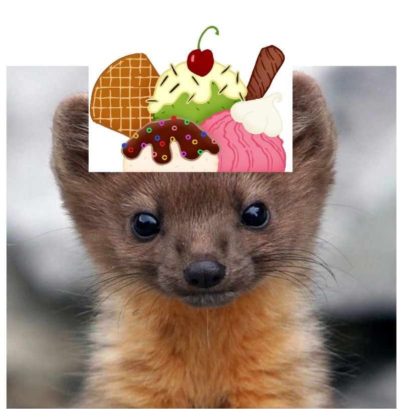 Najprej vzemite kuno zlatico jo po glavi nasprejate z smetano, dodate 3 kepice sladoleda in če vam uspe v sladoled zapičite piškote. Nato med pripravo na tek vrzite čez ramo še raznobarvne mrvice in jo poškropite z prelivom (morda pridobite malo časa ko se bo oblizovala).