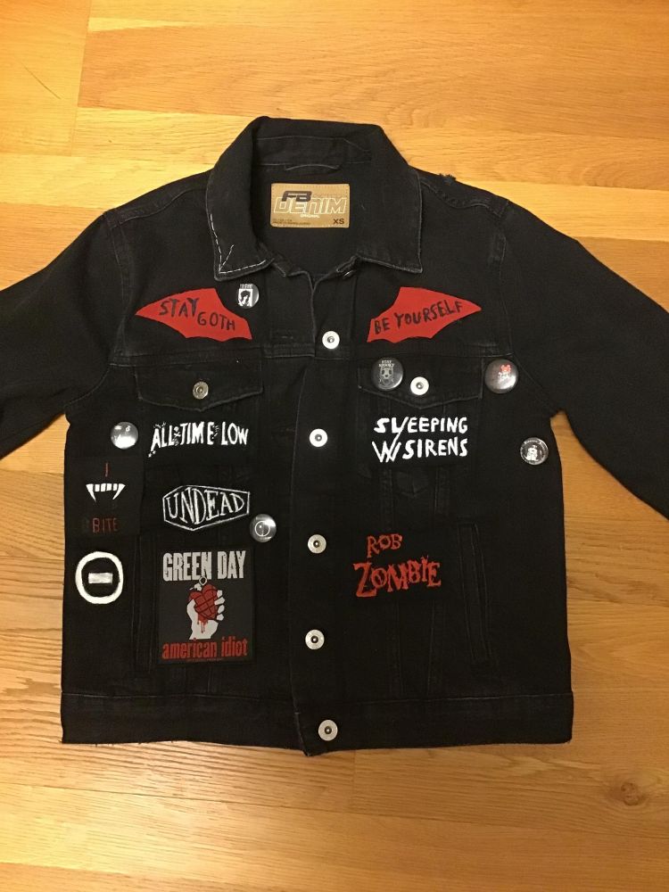 Ni še dokončana, rabim še našitkov izdelati, pa jih našiti (obviously). Zdaj, kaj je to "battle jacket"? To je vrsta jakne ali brezrokavnika, ki jo večinoma nosijo ljudje, ki so del metal ali punk subkulture (lahko pa tudi ljudje v drugih subkulturah). Značilnost teh jaken je da so na njih našitki bendov ki so značilni za tisto subkulturo, in včasih tudi drugi dodatki npr. špice, verige, itd. Pa še tole, na desni strani je nad Rob Zombie našitkom prazen plac, to pa zato ker rabim še narediti našitek za tam. Upam da sem dovolj dobro razložila. :)