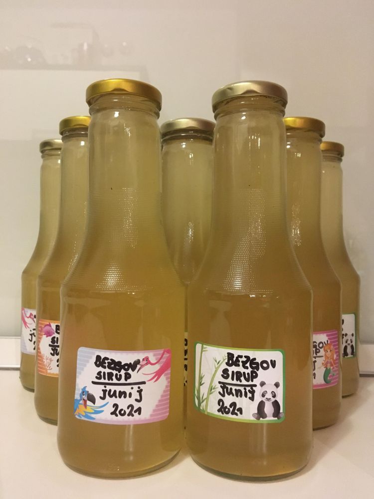 mi smo doma delali bezgov sirup. Mami ga je skuhala kar štiri litre in pol!