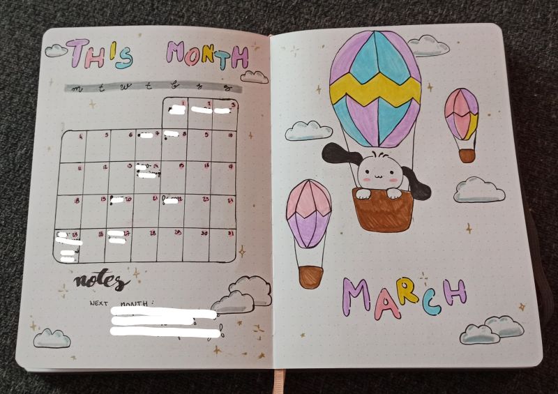 No uglavnem tukaj je moj bujo za marec (malo pozno haha) tole je prva stran. Idejo sem uporabila od lootengstudio (res ma lepe bujote) mal sem spremenila ampak ja. :blush::kissing_heart: