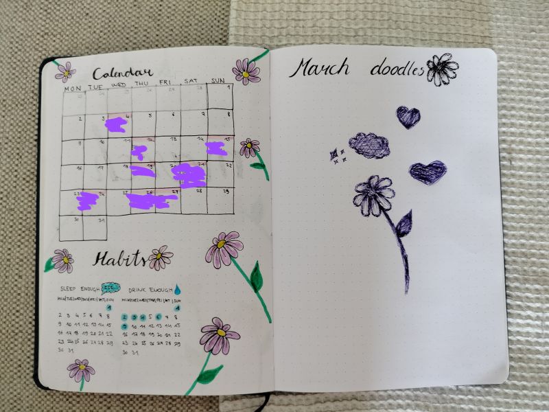 tole je 2. del. Še vedno smo pri marcu. Mamo pa zj koledar(sam zakrila sm moje dogodke) pa habits, ker absolutno premal pijem in spim in rabm bit bl pozorna na to.