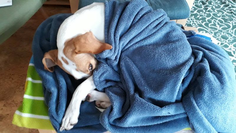 Počutim se kot da ima kuža menstro in se je samo zadekal v deko in počiva XD