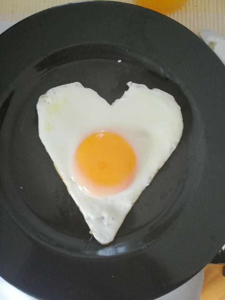 Mi imamo doma neko ponev, ko ima notri modelčke v obliki srčka, pa sem si jajce spekla za zajtrk.