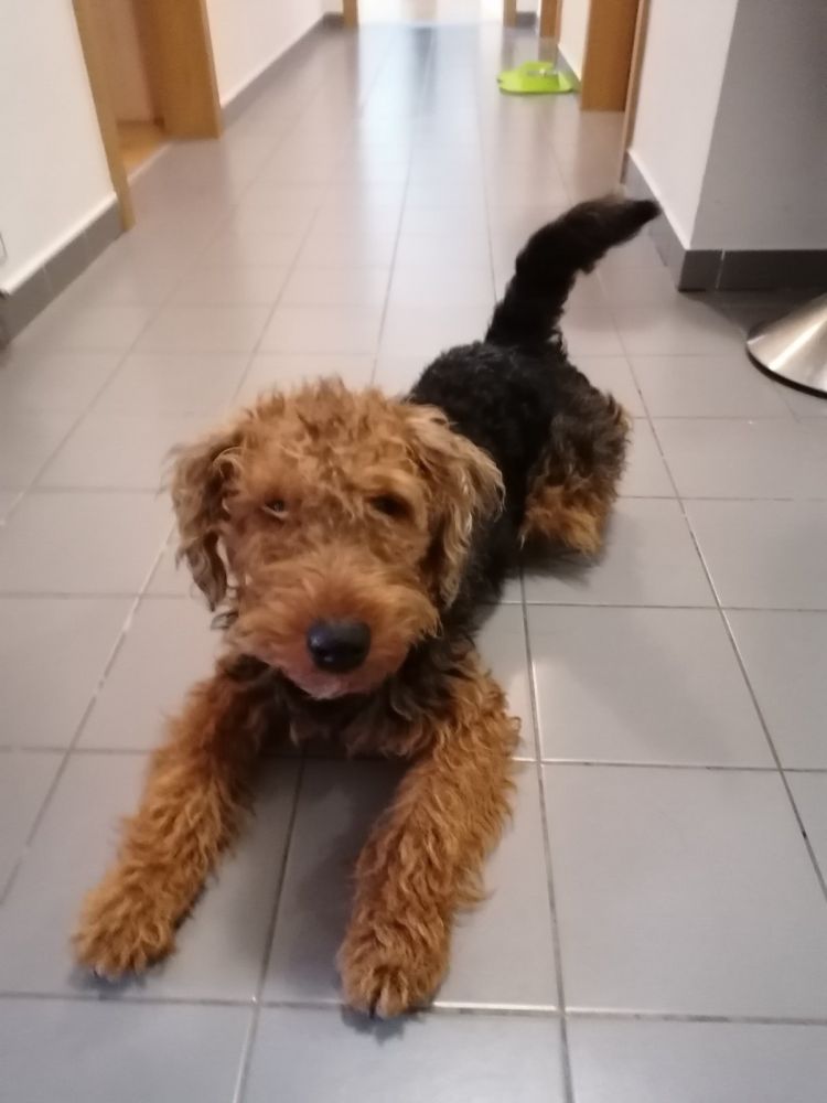 Hi! tole je moj kosmati lars. z psom od ulala sta se ravno prej igrala. sta enake pasme in sicr welsh terier oz. valižanski terier. zravn je bla tut amy in se igrala s pilly