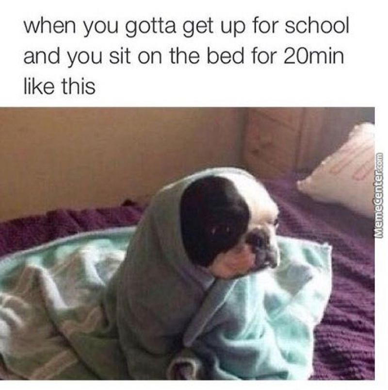 ko moraš vstati v šolo in 20 minut tako sediš na postelji