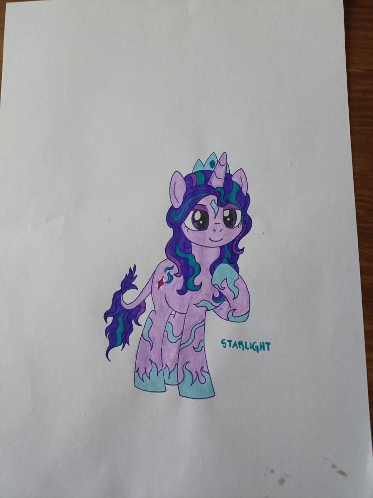 redesignala sem *b* Starlight, *b* ki mi je bla od nekdaj zlooo všeč. tak ress je kul. mislim... njen backstory kak je postala evil je bil brezveze, tak pomojem najslabši v celi seriji. ampak pol ko je DEJANSKO bla evil je blo fuuul kul. in pol ko ni bla več evil je postala zlo nice. lovam tudi njen friendship s trixie xD
