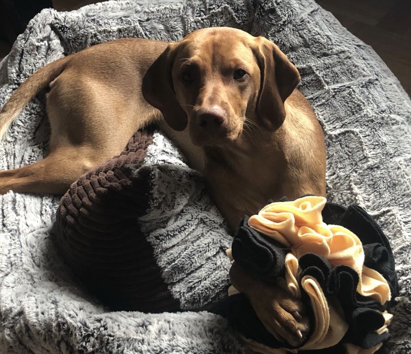 Tudi jaz bom sodelovala na natečaju, in sicer bo moja prva fotografija slika moje psičke Loone. Upam da vam je všeč! Loon@ leži v svoji posteljici in se zabava s svojo igračko doma narejeno šnofžogico (v žogici iz blaga so predalčki, v katere se skrije priboljške/briketke in pes jih mora s pomočjo vonja oz. smrčka poiskati!) Prosim, da svoje mnenje izrazite v odgovorih! Hvala!