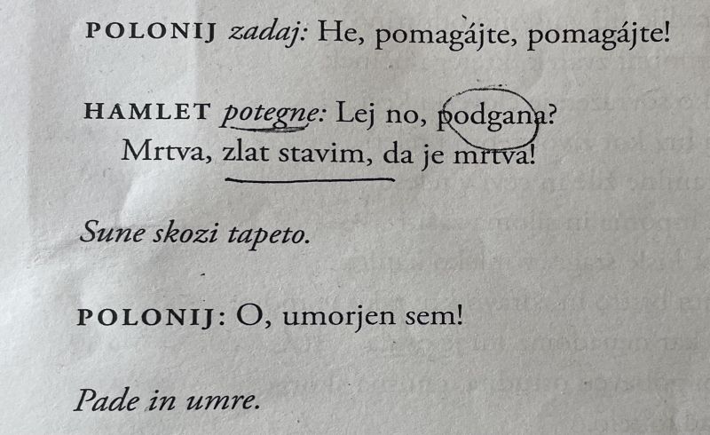 Ravno sem brala Hamleta :skull: in pri Shakespearju mi je najbolj všeč kakšne reakcije🤪 imajo ljudje na to, da jih je nekdo zabodel...