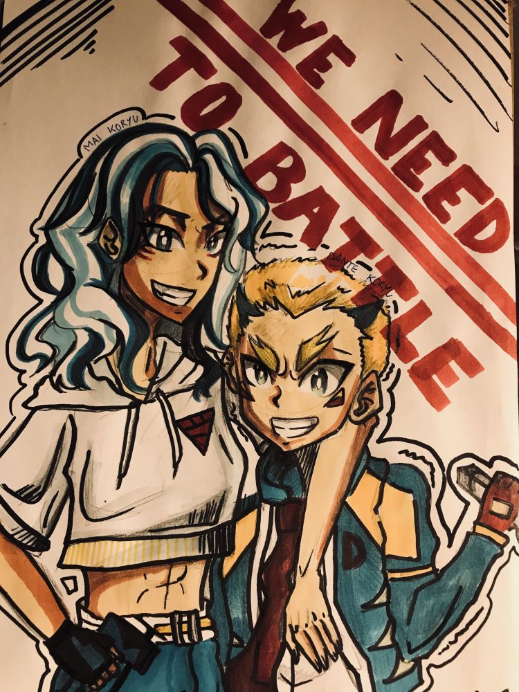 No tule sem narisala spet prejšnjega karakterja z prvega dela in še enega karakterja z Beyblade burst. Ime: Dante Koryu...:sweat_smile: (pač onedva sta kot nekako brat in sestra:sweat_smile:)