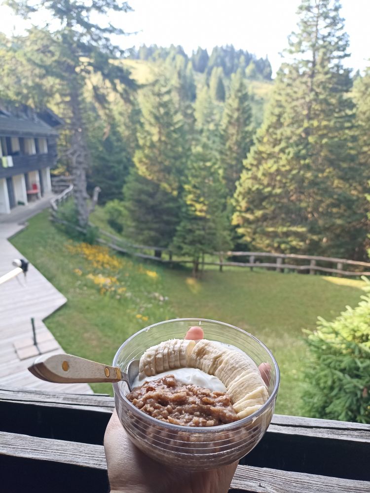 ravno smo se vrnili iz fajnega pohoda, saj smo v hribih. preden smo šli, sem seveda pojedla en okusen, sicer zelo basic, zajtrk. :)