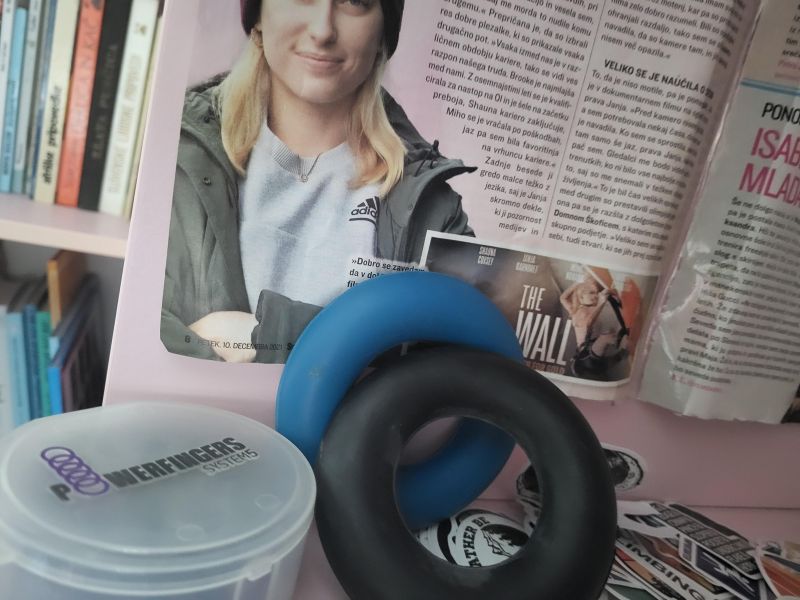 Tokrat so še vedno na sliki stvari iz "plezalnega kotička". In ze so članek o Janji, 3 stvari s katerimi treniram ko berem za prste, ter nalepke na katerih je plezanje.Pa se opravičujem da je tak grda slika ampak mam prlepljen članek in ni šlo drgač.