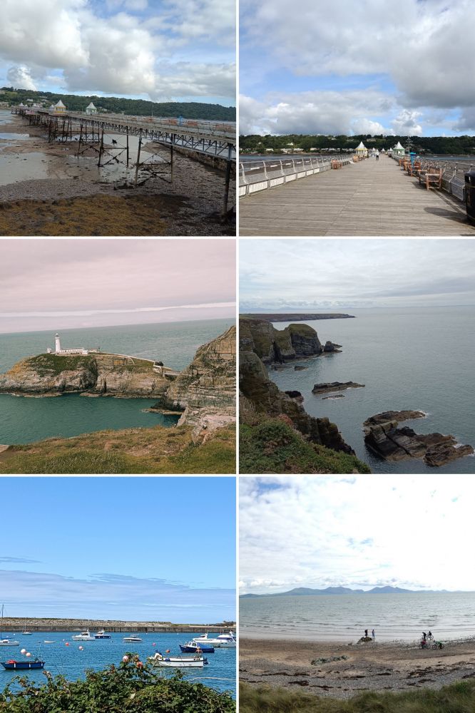 Nato smo šli na en otok, kjer je ena obala z otočkom in lepim svetilnikom, kamor se lahko pride peš - *b*slika druga vrsta levo*b*. Tam okoli so zele klifi in druge obale - *b*slika druga vrsta desno*b*. Če si dobro opazoval, si lahko videl obalo Irske ... Pogledal sem na Maps in videla, da je direktno od tam Dublin.