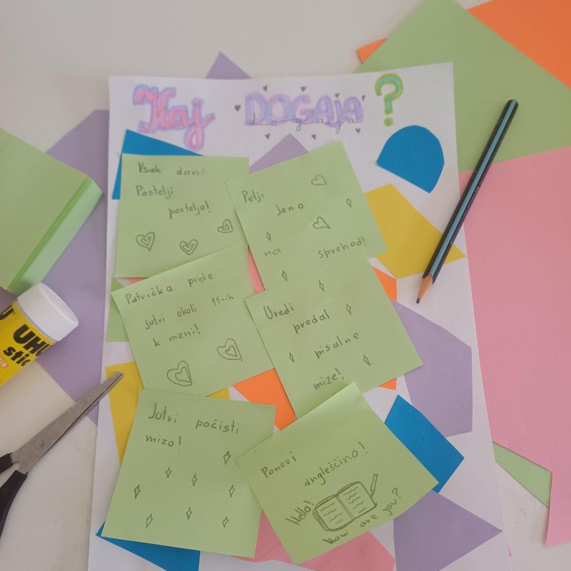 3. Napišite listke z opravili ter jih prilepite.