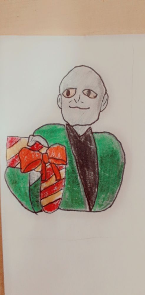 Narisala sm Voldemorta iz Harryja Potterja obrnjenega na hec.