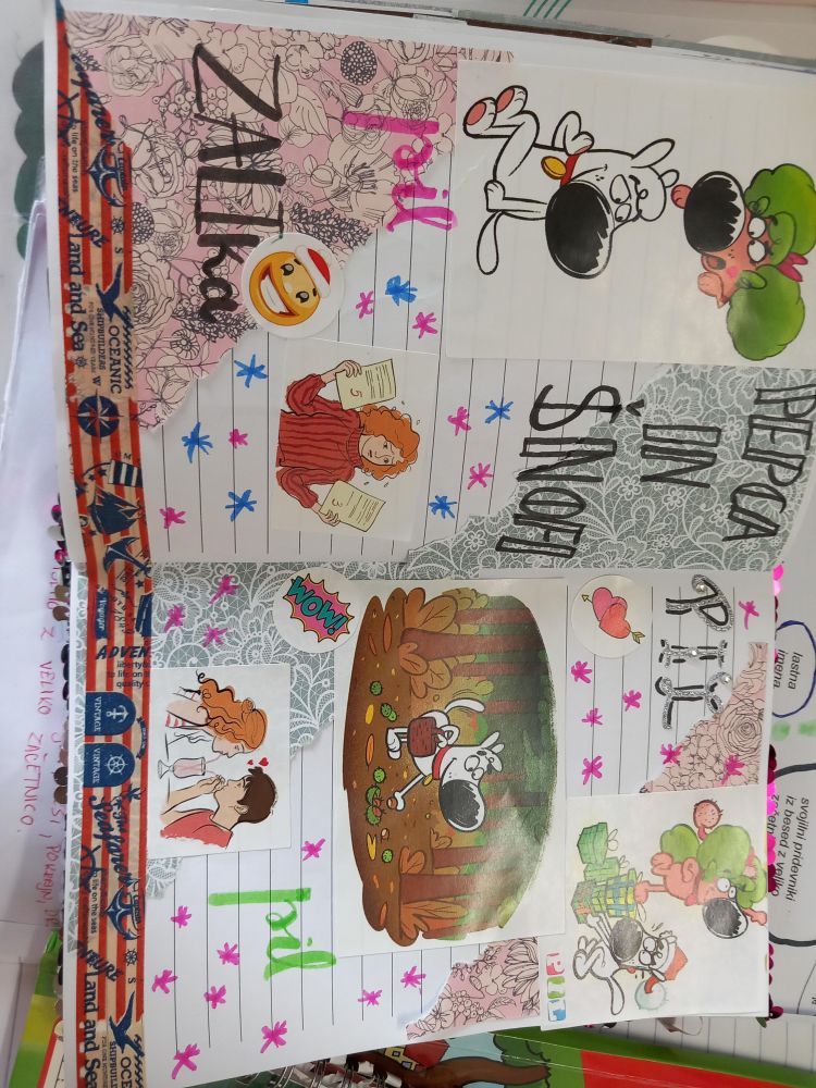 veš, da tole sem pa res mogla pogledat! ful je lepo! sem lajkala! poglej kak sta cuteeee pepca in šnofi!!! a te nalepke si zraven revije dobila? res si ful lepo nardil! super bi blo če bi še kej iz scrap book objavila, ker je zelo lepo!