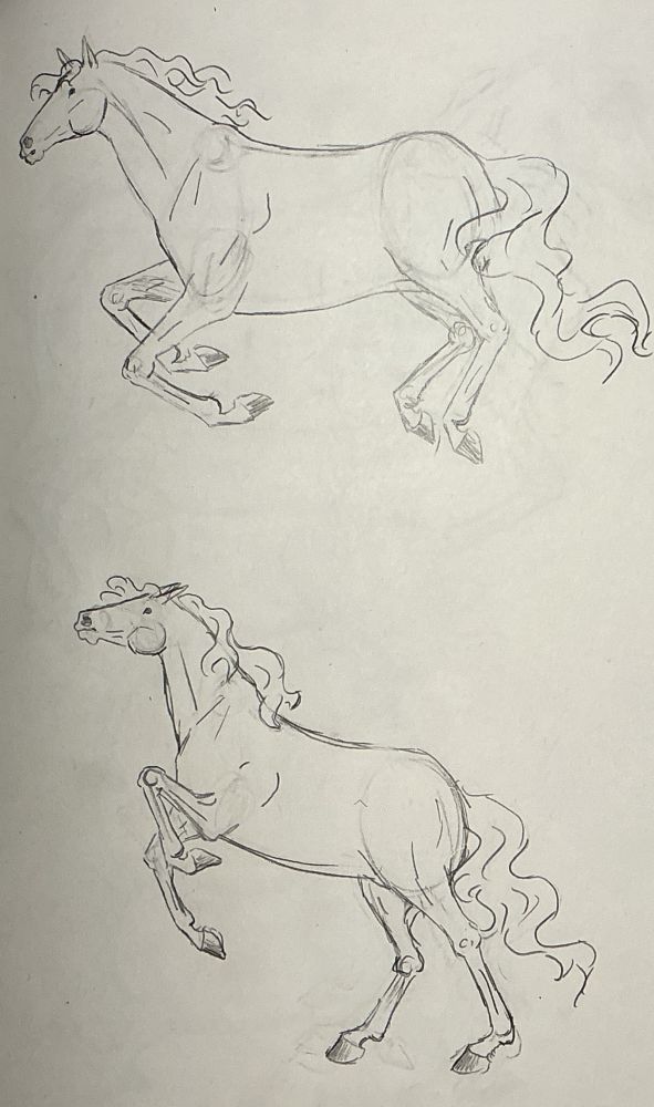 Jaz že sedem let rišem konje in preučujem njihovo anatomijo. Tudi jaham. To je par skic konjev upam, da vam je všeč. Mogoče bom še kaj objavlajala, na primer slike, ki sem jih narisala ko sem bila majhna.