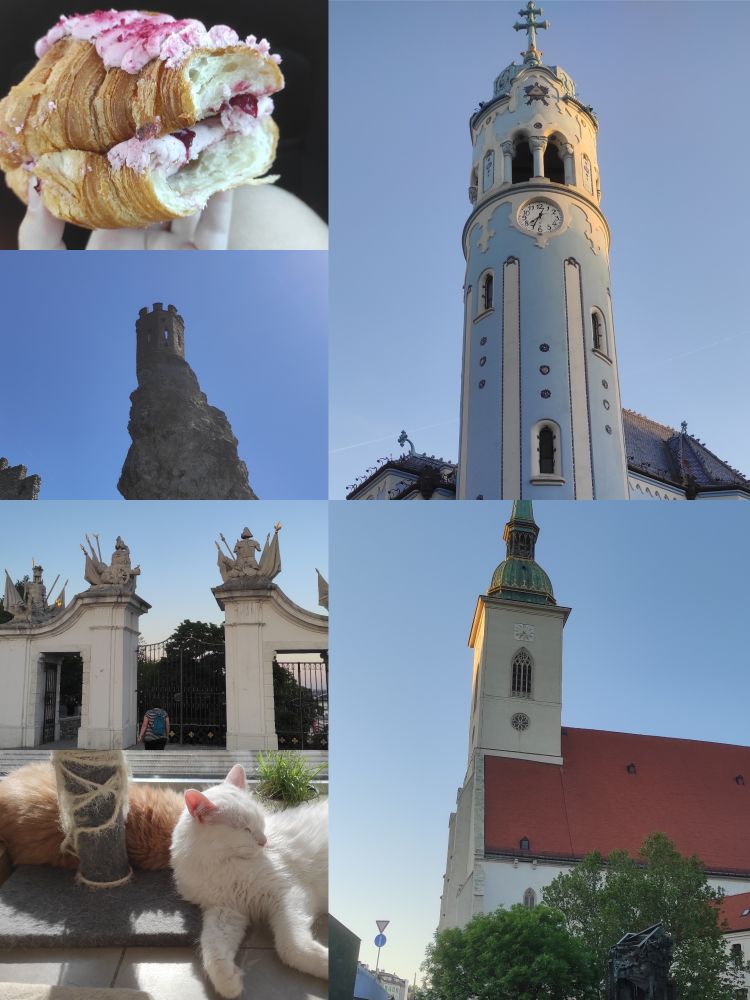 Od zadnjega dneva imate sliko stolpa na gradu Devin, tam je tudi potekala železna zavesa med hladno vojno. Aja ono pa je moj croissant z veste kok file to je taaaak dobro, kupila sem si ga v auparku:v::heart:majo celo nadstropje gostiln.