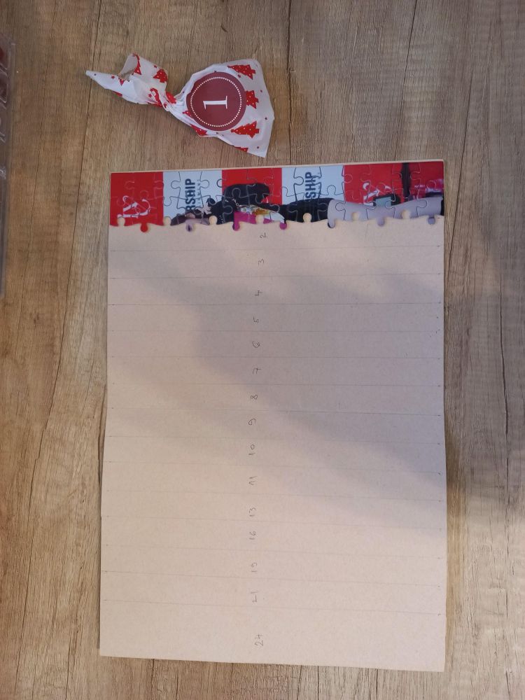 Letošnja tema je bila, da vsak dan s sestrico dobiva vrstico sestavljanke, ki bo 24.12 zaključila svojo pot<33 Babi pa je omenila, da se v kakšni od vrečk skriva tudi nekaj sladkega! Danes sem dobila prvi dve vrstici in ju sestavila! Se katerim od mojih Kpop fanov že zdi kaj bi to bilo? Heheh, ker jaz že vem<33
