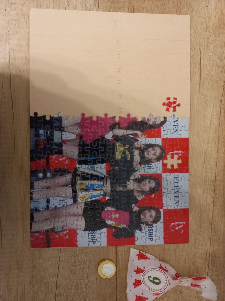 Trenutek za dejanski koledar:) Sestavl smo že pol sestavljanke iiii kok sm js nappy, ampak ja tistle košček me še malce zafrkava:) Zaslužla pa nebom mal;):blush::wink: rada vas mammm:kissing_heart: se slišimo jutri<333