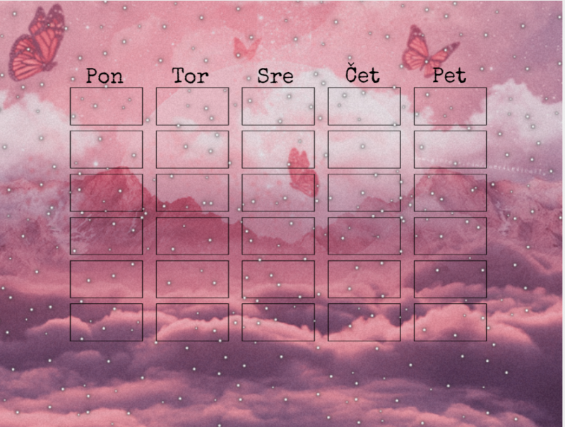 Emeline tukaj sem poskusila narediti urnik. Ni glih tak kot tvoj ker nimam canve in je narejen z picsartom...ampak ok...Hope you like it!