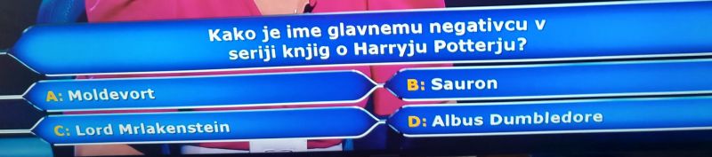 Js sm včeraj gledala dobrodelnega Milijonarja na Planet TV. Je bilo pa eno vprašanje, kjer je gostja skor falila. Si predstavljate, da bi vi kot HP fani falili tu?