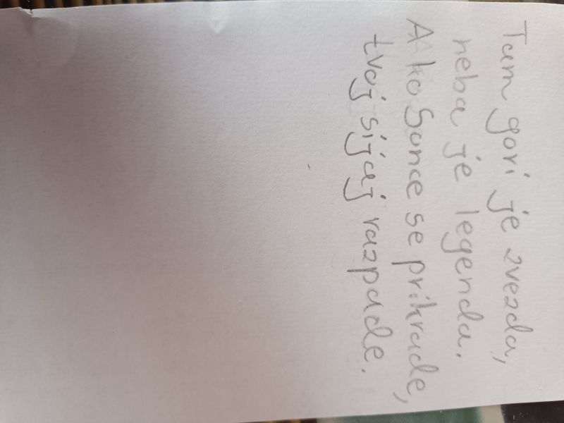 Pesem je zelo lepo zapisana in rime so zelo preudarne in izvirne. Naloga je zelo dobro opravljena<3