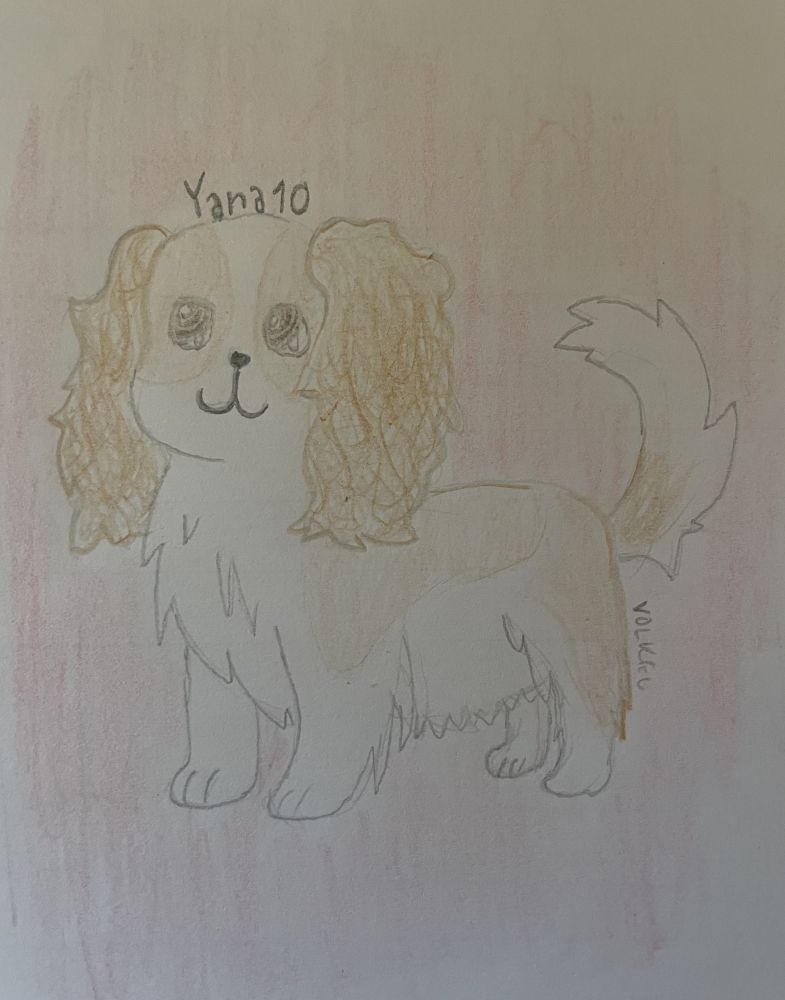 Tukaj je tvoja risbica kokršpernjela (menda rabijo posebno skledo za pit zaradi svojih dolgih kosmatih ušes:ear:?). Luštni kužki po mojem mnenju:heart_eyes:.