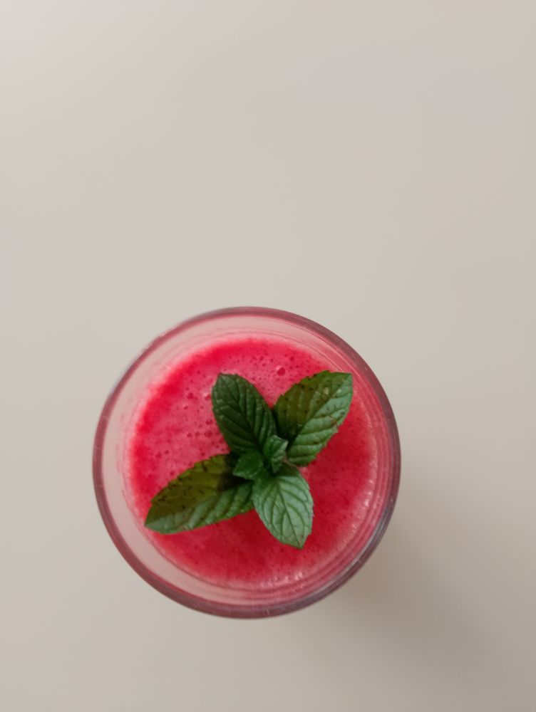 Sadje damo v kozarček v katerem bomo pili. Zmiksamo sadje in postopoma dodajamo vodo. Dobro premešamo. Dodamo še sladkor in meto. Spet dobro premešamo. Če želite lahko precedite, ampak je zelo okusno tudi, če ne.