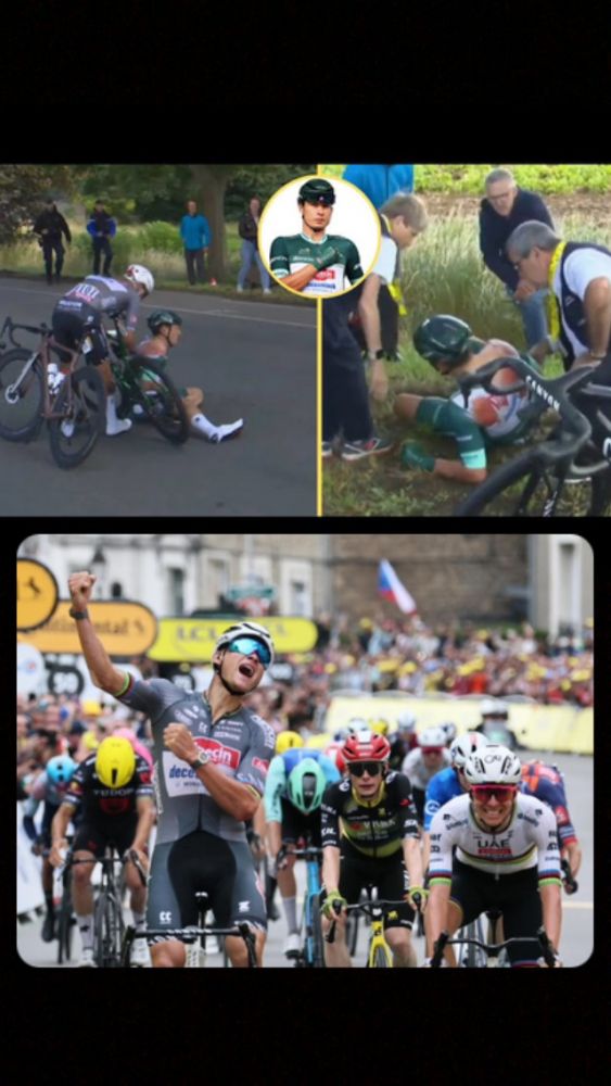 Okj moje yappanje: first, etapa zlo ravninska, torej pricakovanje sprintanja na koncu etape- priloznost za sprinterje. Torej etapa dost mirna, edin pol so zacel sprintat za leteci cilj zelene majce (ubistvu umesni cilj za tocke za zeleno majco - najboljsega sprinterja).. no zeleno majco je trenutno meu Jasper Philipsen. In ko so tm sprintal, je prislo do prerivanja, in je en kolesar zadeu philipsna v kolo, njemu je zmanjkal ravnotezja in je grdo padel pri veliki hitrosti. Philipsen je meu zlo opraskan hrbet in ma tut zlomleno kljucnico, zard cesa je odstopiu na touru. Isk philipsen je en mojih ljubsih sprinterjev, tkoda res skoda, tok mu je slo dobrr:sob::sob: