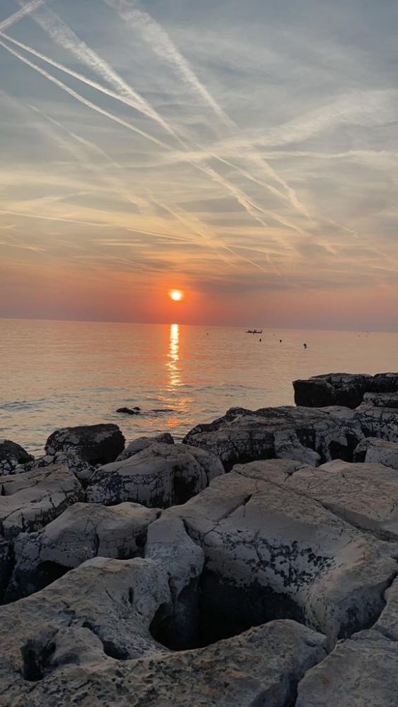 ahhhhh kok lepo citat<333 pa ti kamnii - like i can'ttt, pa sonce čist daleč v ozadju in še par ljudi in nebo polno tistih lis od letal pa tko lepo pastelno jeee, pa morje je tok lepo
