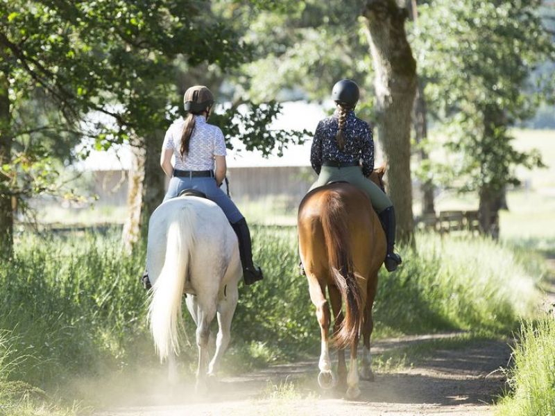 Po koncu dneva se s Karolino dogovorim, da se popoldne dobiva pri hlevu v katerem imava obedve svoje konje nastanjene. Osedlam Floro ona pa Stello in se odpraviva na teren.