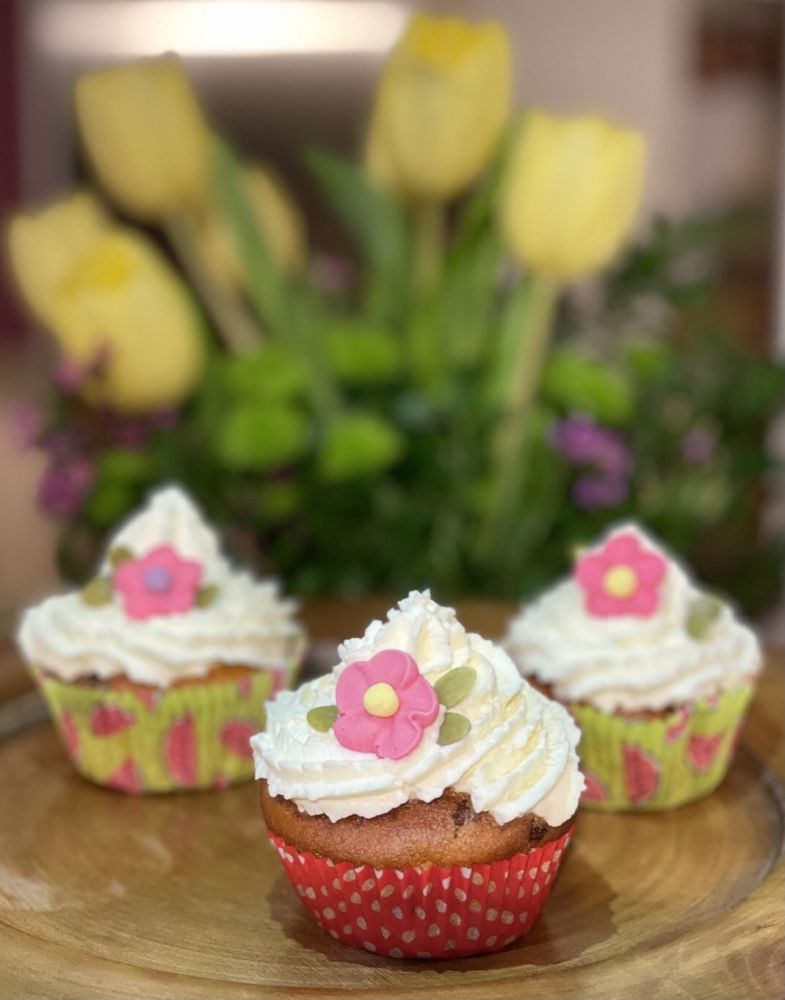 5. Kremo damo v vrečko za okraševanje in z njo okrasimo mafine. Po želji na vrh dodamo še bučna semena ali druge okraske.