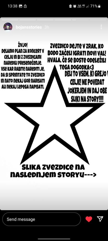 Zadnc je nekdo dal na story na instagramu tole glede nekega presenečenja za jokerje pac na koncertu tko da sam pripenjam tlele sliko ce komu kej pomaga. V naslednji objavi dam pa še eno sliko gor kr ne morm dveh na enkrat:heart:. Lepo se mejte:two_hearts:🫶:gift::snowman2::snowflake:
