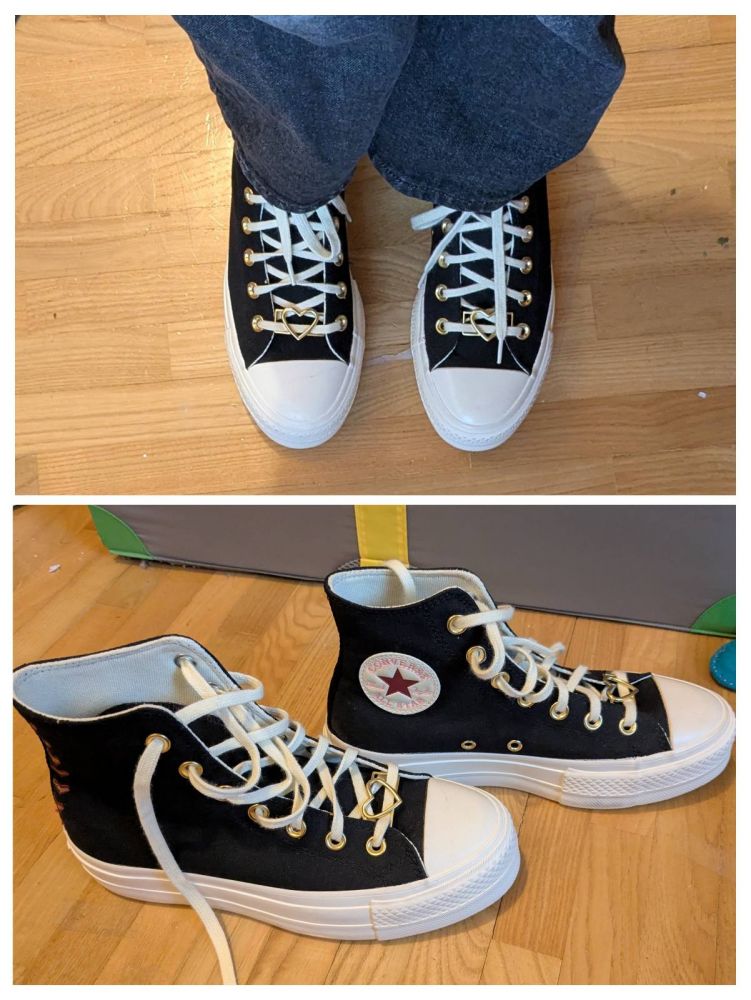 hi guys, tole bom dala v testni forum, da ne polnem Hvalilnice. soo, ja, dons sm bla v Kranju, da bi kupla nove čevle, in sm pač najdla ene all-starke. hotla sm rdeče, sam so mel sam ta nizke, ka pa men zgledajo take čudne, tkoda sm uzela te. v ta levmu čevlu mam not vložek, da ti pomanša čevl, ka mam desno nogo večjo in pol rabm večjo številko.