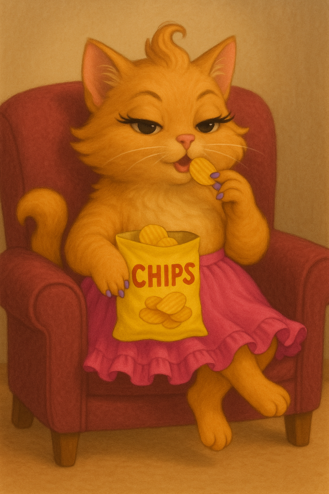 Tvoja mačka ki je čips pa nosi roza krilo pa diva je pa njeni nohti so lila painted kokr si hotla<3 nimam talenta za risat so yeaa:)))