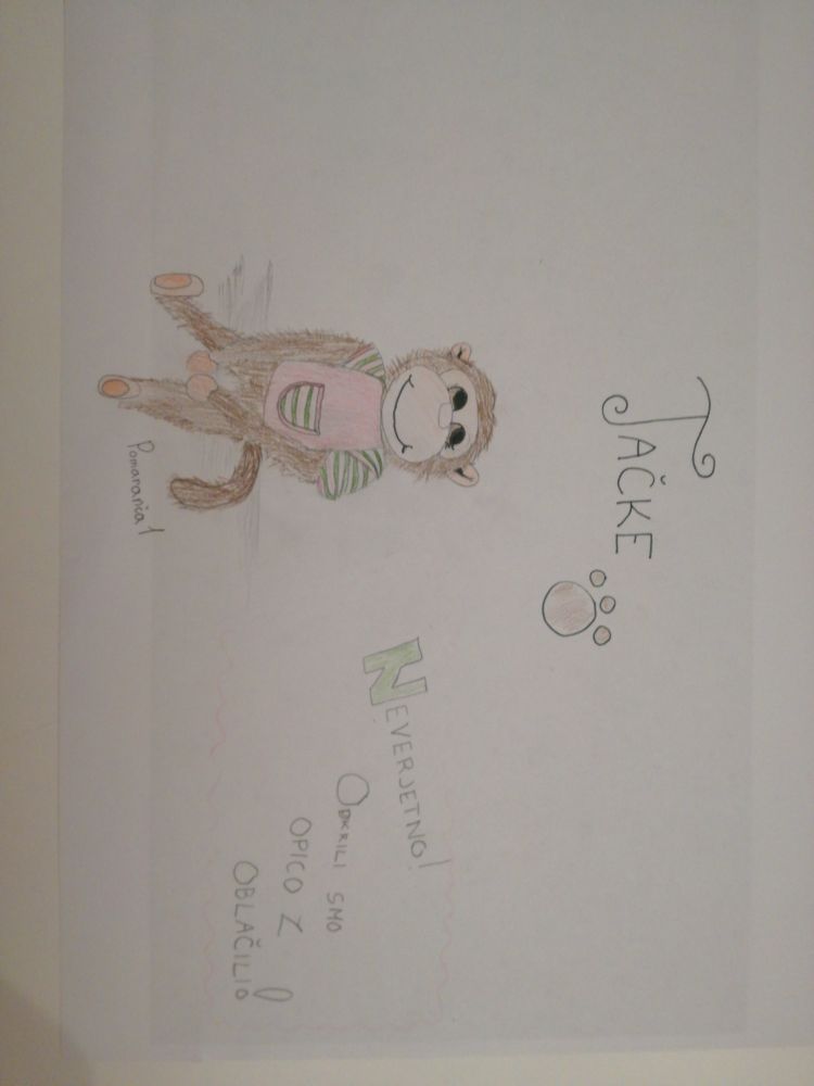 Tukaj moja nova risbica:) Na sliki je moja opica, ki sem jo nekako ilustrirala. He, he ni prava ampak je pliško.