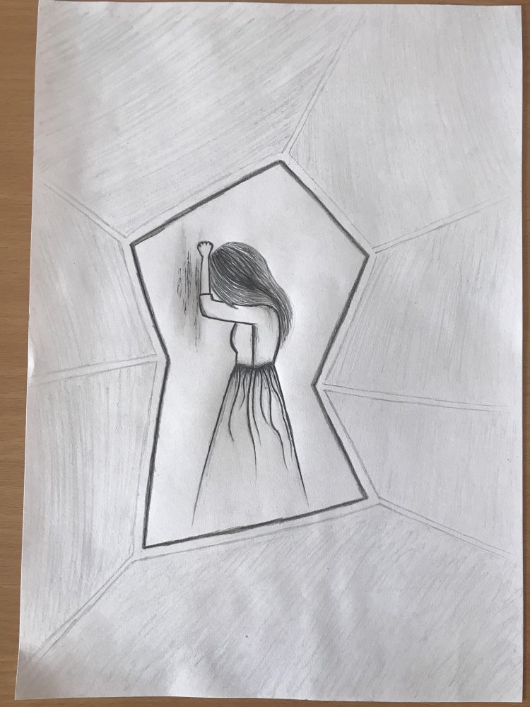 Ta slika ki sem jo narisala predstavlja razbito ogledalo.🪞 Na sredini sem jaz, okrog pa ostali delci ogledala oz moje tezave. Vsi te delci in jaz se moramo sestaviti skupaj da postanem srecna in zadovoljna s svojim zivljenjem. Na splosno pa slika predstavlja najstnike ki imamo kup problemev kot so npr. sola, prijatelji, ljubezen, samopodoba, druzina, custva...:wink: