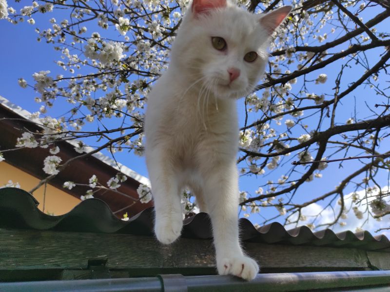 prilagam še eno sliko, na njej je mačka :cat: (že spet:sweat_smile:) in češnjevo drevo, Slikano je aprila 2022 in slikala sem sama.