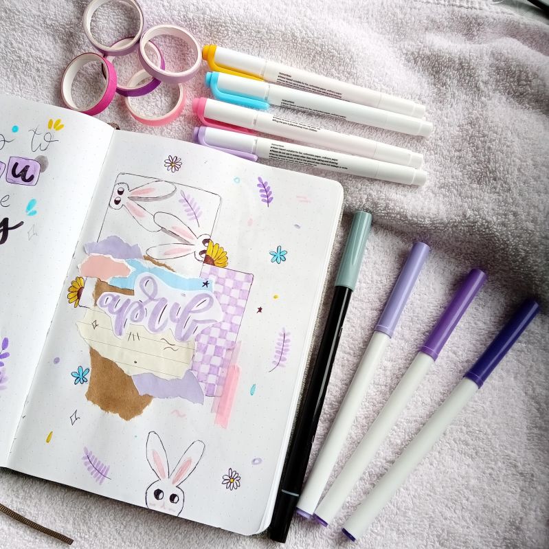Drugače pa tema so zajčkiiii in rožceee, ker ko pomislim na april, pomislim na veliko noč in rože ter travnike...Sicer je velika noč v marcu (letos) ampak okk<3 Vse skupaj je zelo barvno in polno vsega živega in mrtvega lol, ker se mi je zdelo, da je zunaj trenutno zlo barvno<3 Je pa večina barv pastelnih<3 Ko sem razmišljala za temo (lani sem imela že probleme z temo pri aprilu) sem imela v glavi te teme: sadje, kravice, race, kmetija, sivka (potem sem pa dodala še poleg sivke druge rože in zajce), viseče rože, luna in zvezde, pecivo, nekaj povezano z dežjem...v glavnem OGROMNO tem hah<3 Težko sem si izbrala ampak mamo sem vprašala kaj naj narišem in sem ji za marec pokazala in sem rekla, da nočem zelene (ker sem jo pri marcu velik uporabla pa čeprav je moja naj barvaaaaa :( ), ne da je nočem...nisem hotela ponavljat barv in pol je rekla, da naj polno rož narišem...jaz pa sem dodala že zajca<3
