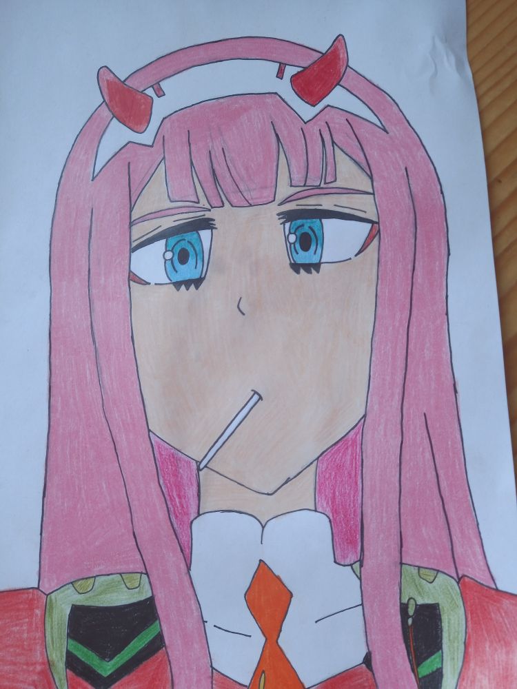 Narisala sem Zero Two iz Darling In The FranXX in mi je roka skor odpadla ko sem barvala..
