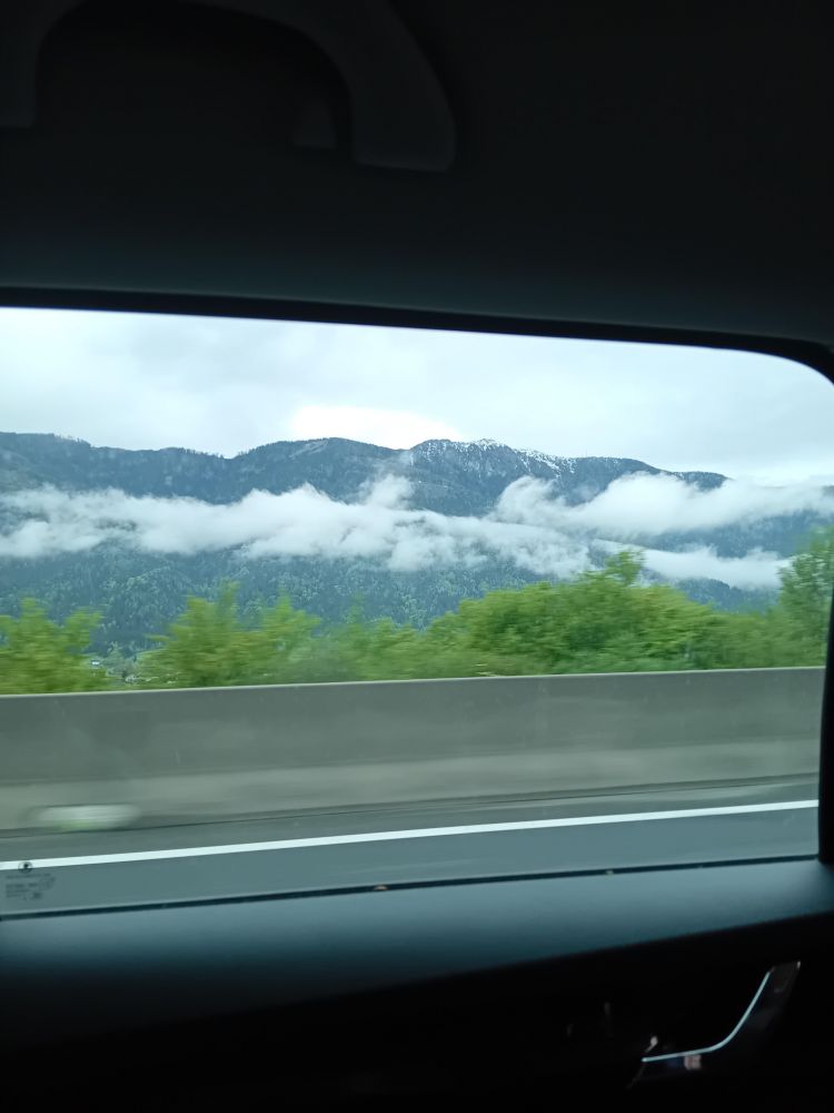 Evoo zdele se pelemo po Avstriji mall... Js mam že celo pot slušalke gorr, sam upam da neoujo crknile ker nimam polnilca sabo :sob: drgač pa jaa veste kok so oblaki nizkii, evo tuki je že slikca heh<3