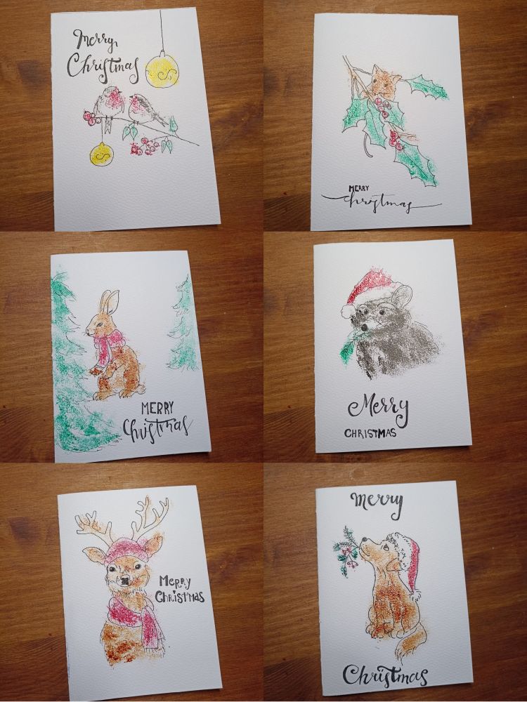 čez vikend sem narisala 6 voščilnic (5 za moje prijateljice in 1 za sošolca, ki ga imam pri secret santa v šoli). katera vam je najbolj všeč?