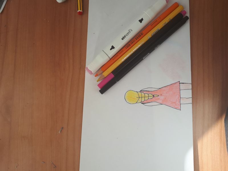 Naslednjič pa ti svetujem, da noge narišeš malo bolj blizu, ker bo boljše izpadlo. Za kito pa lahko pogledaš tutoriale (https://iheartcraftythings.com/wp-content/uploads/2021/05/How-to-draw-braid-in-8-easy-steps.jpg), bo izgledala bolj realna.
