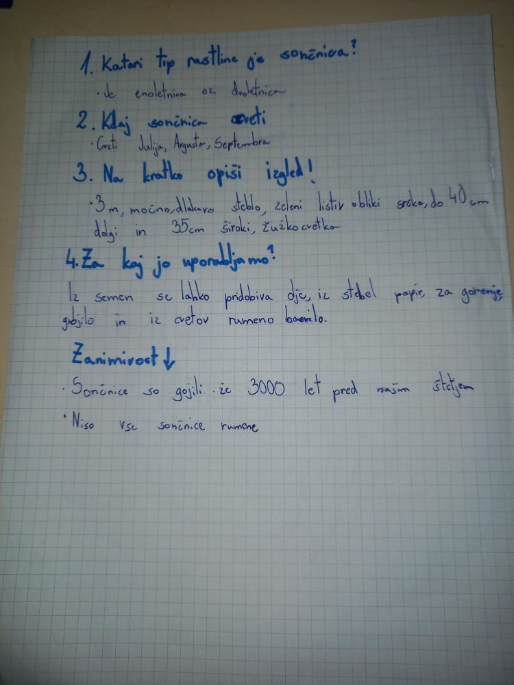 moja domača naloga. Na njej so tudi zanimivosti o sončnici: