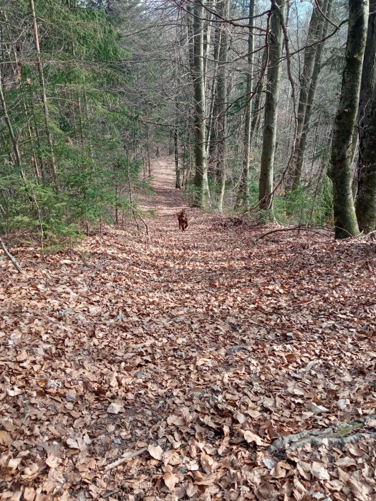 Zelo lepa slika!! Všeč so mi listje po tleh in pa seveda kužek!