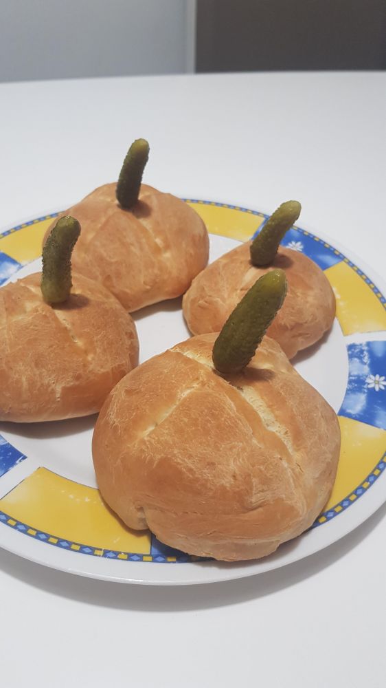 Spodaj so *modra*KRUHNE BUČE*modra* (sama sem jih poimenovala XD). Recept za kajzerice: