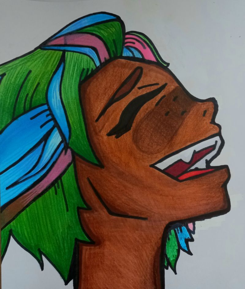 okej glej... nehej se sekirat, da je slaba, ker tole zagotovo ni salbo:sweat_smile:! edino veš zakaj mi je žal zate... ker bom zdaj napisala ceu spis ti ga boš ma mogla brat:joy: (sej ti ne bo tok težko k si rekla, da maš rada mene in moje spise lol). koža je res malo temna, ampak lepo si improvizirala, ker si dejansko zlo dobr nardila:thumbsup::wink:! pa ti še nekej povem, če slučajno ne veš... lajkalaaaa smm:sparkling_heart::joy:! okej... zdej pa bom dejansko komenterala sliko:sweat_smile:! zelo je lepo, ker si obrobila s črno, pa super je, da nisi tko čist na tenko obrobil ampak malo bolj na deblo:ok_hand:! lasje so dejansko lepo izpadl, ker kokr sm gledala ma ona v originalu drugačne lase, ampak te barve so super izpadle:heart_eyes:! pa veš kaj mi je ful všeč... da si nardila tam med glavo in vratom tako črto al kako se temu reče (upam, da razumeš kaj mislim), ta "črta" je dala ful dobr ustis sliki:heart_eyes:! zdej pa njenin zobje... pa te zobje zgledajo tak dobrrrr:heart_eyes::sweat_smile:... pač čist lepi beli, pa tak ravni pa ful je dobr da ma tak mal špičat en zob:sweat_smile:! okej, da odgovor ne bo pre dolg bom probala tuki zaključit... pač res koža ni taka kot si hotla, ampak slika je še zmeri superrr:stuck_out_tongue_closed_eyes:! pa zanima me, če ti te svoje izjemne slike sama narišeš pač po svoji domišliji ali prerisuješ (pač, da gledaš sliko pa rišeš kar vidiš):thinking:?
